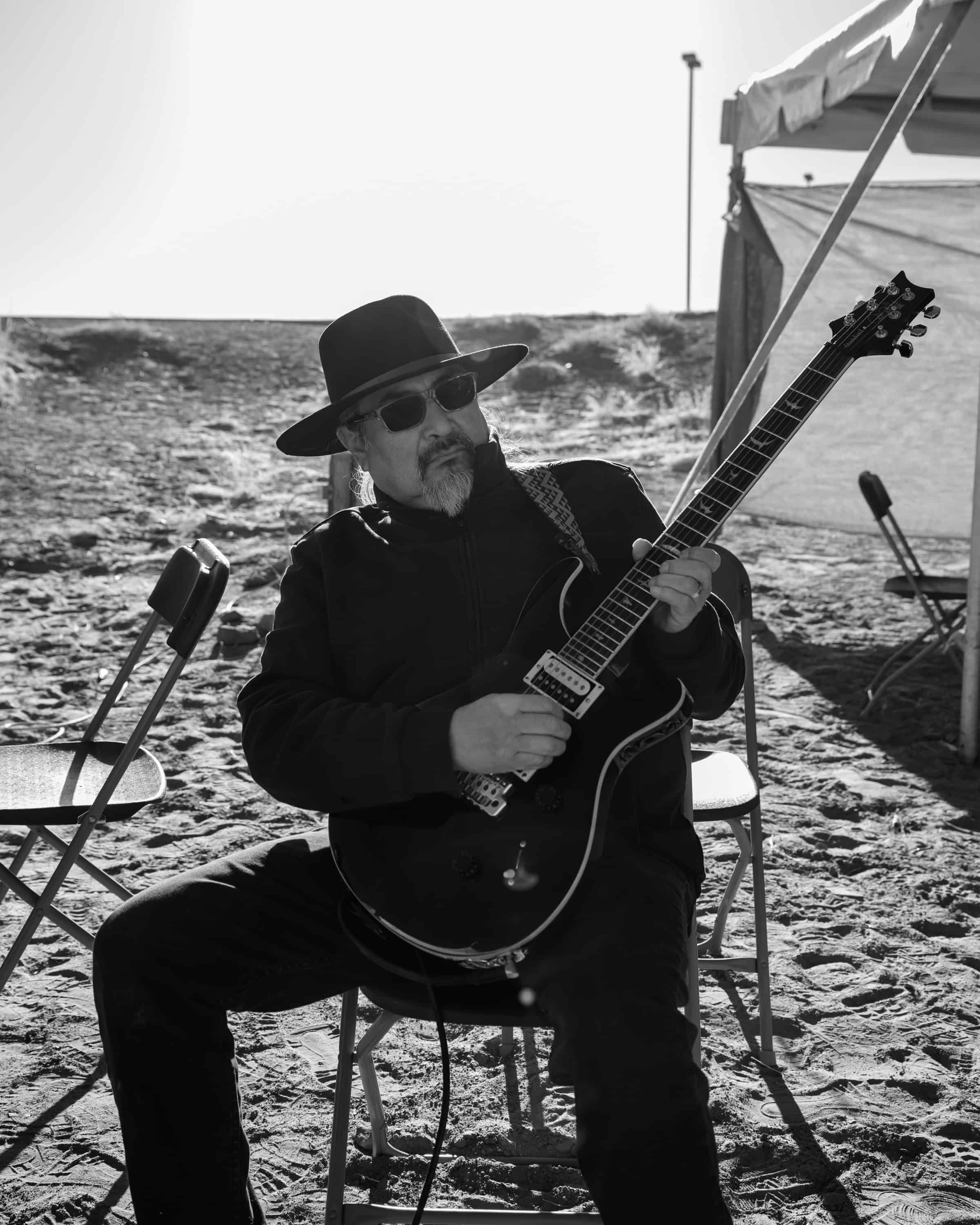 A portrait of Donny Mose (@donnymosemonumentvalley), a member of the band Dark Sky, taken after his beautiful rendition of the national anthem before the start of the race.